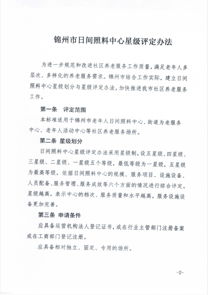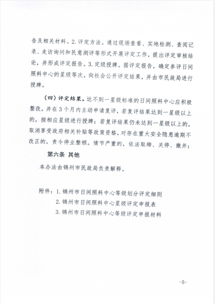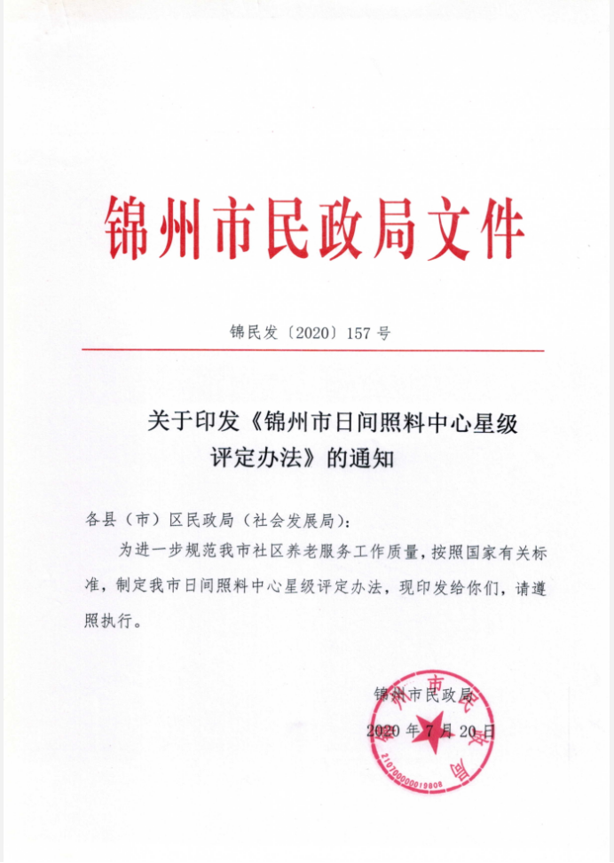 關于印發《錦州市日間照料中心星級評定辦法》的通知(錦民發【2020】157)