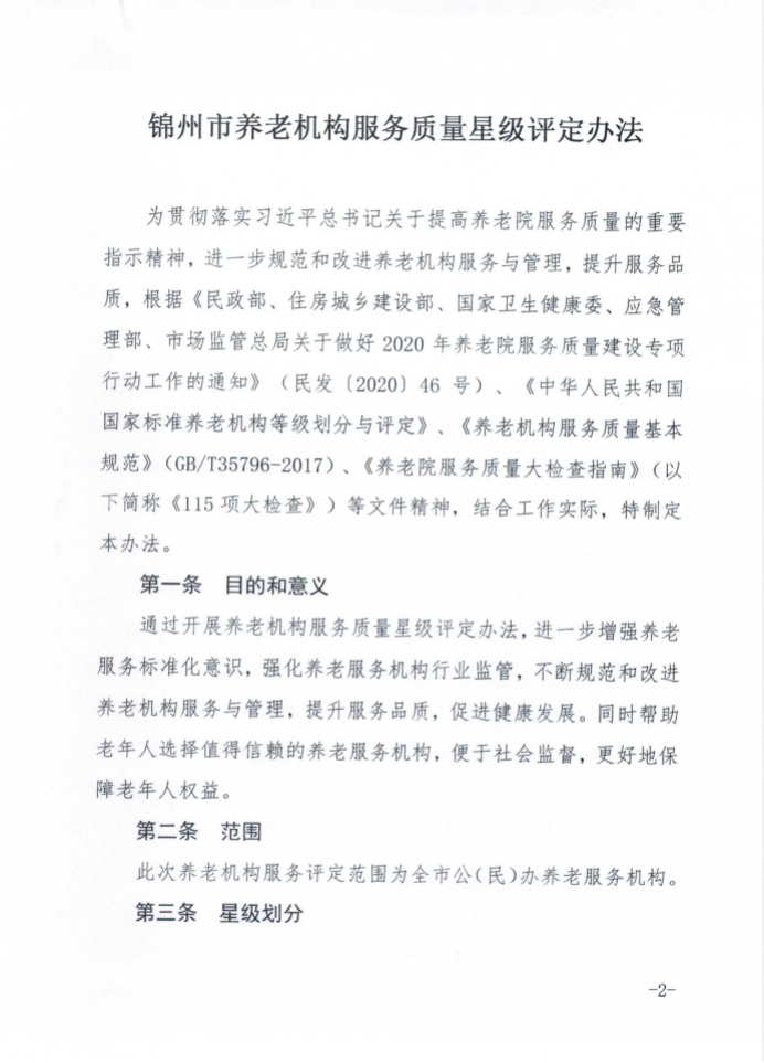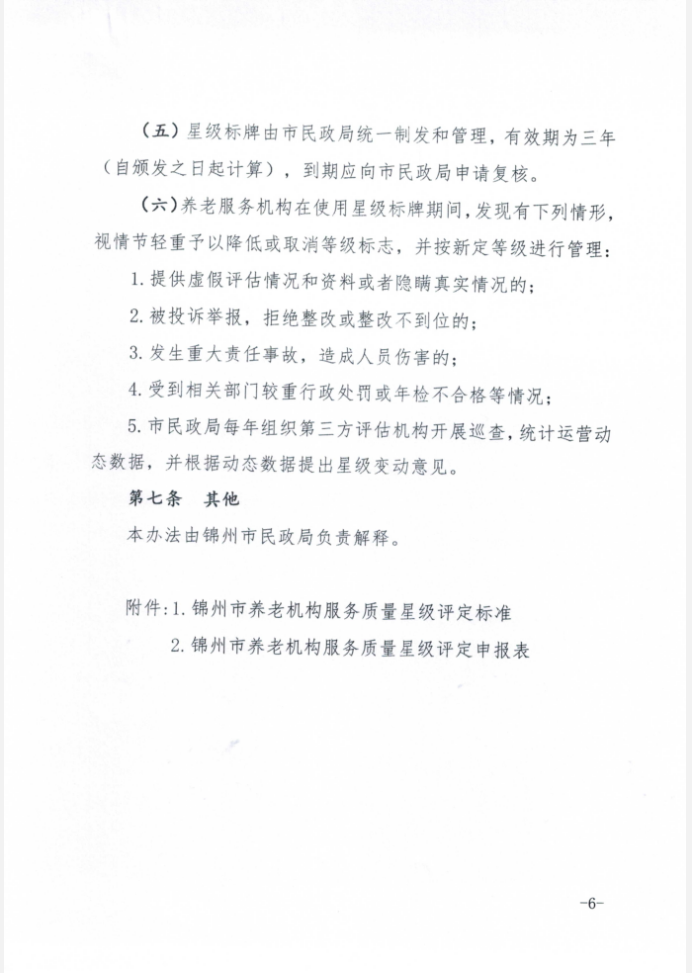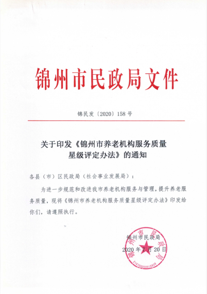 關(guān)于印發(fā)《錦州市養(yǎng)老機(jī)構(gòu)服務(wù)質(zhì)量星級(jí)評(píng)定辦法》的通知(錦民發(fā)【2020】158)