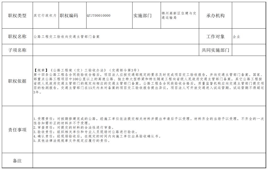 其它行政權力+QTJT00010000+公路工程交工驗收向交通主管部門備案